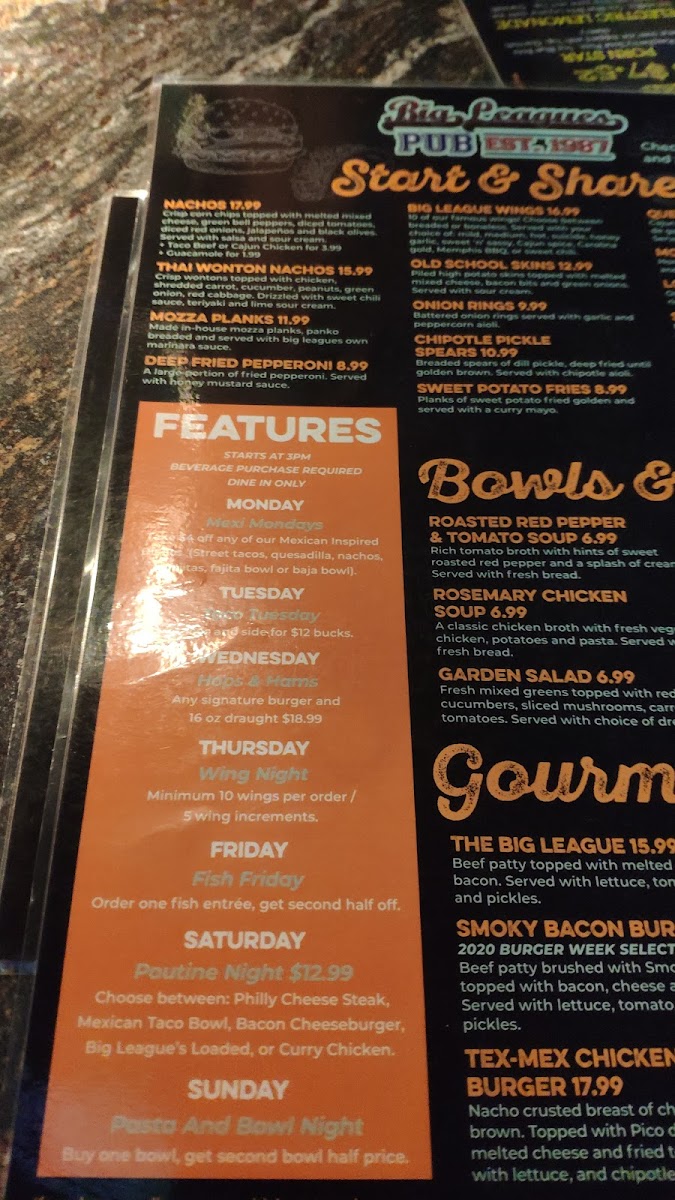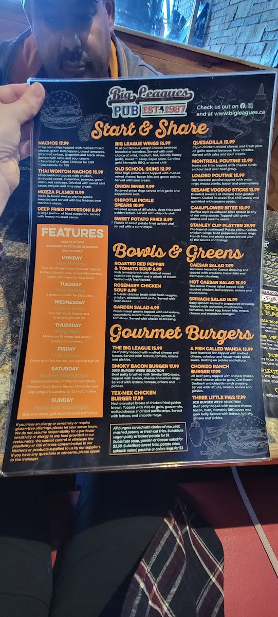 Whether you're enjoying the extensive beverage list with a cold soda or a refreshing iced tea, Big Leagues promises an unforgettable dining experience.